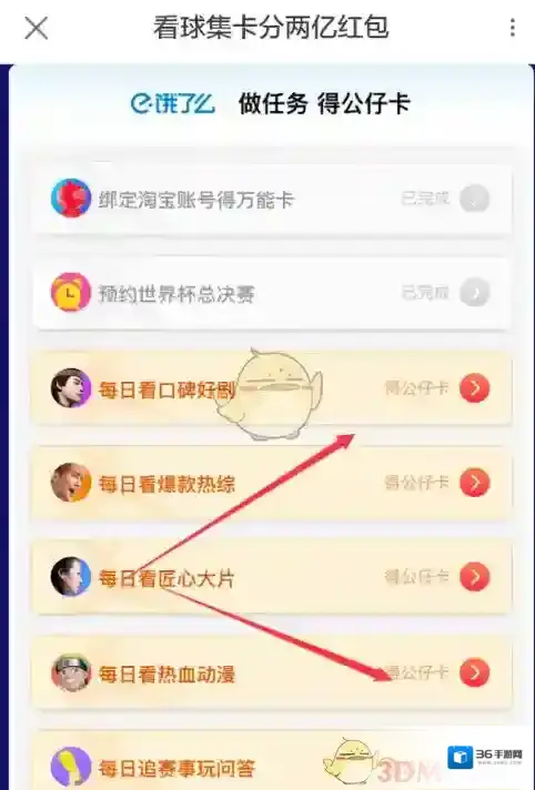 要是还没有获得万能公仔卡,此时可以滑动屏幕继续做下面的任务,如下图所示。