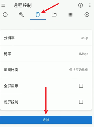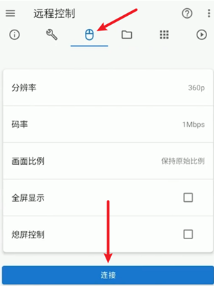 4、进入手机详情,切换到远程控制选项卡,设置好参数,点击下方连接即可