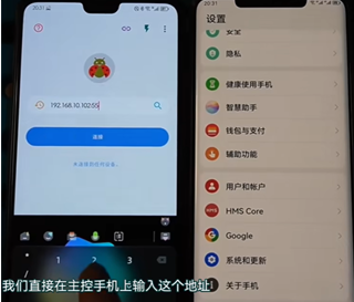6、断开数据线,在主控机上,填写被控机的 IP 地址:端口号(端口号默认是5555),点击连接