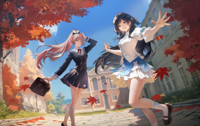 藏在衣角的枫叶,你发现了吗?JK时装上新,秋日序曲即将奏响,来和妖刀姬、蓝梦一起漫步校园。