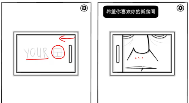 门口,看到上面的单词和符号,向左拉开,点击和他对话,然后再拉回去。