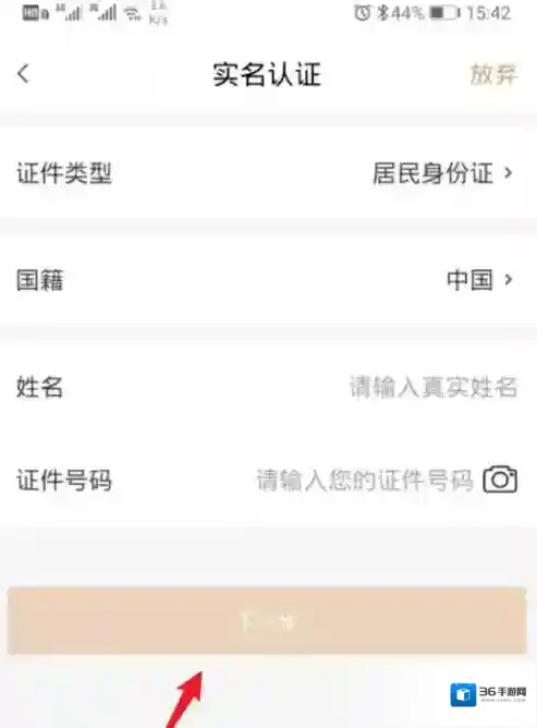 5、在实名认证中,输入个人的信息,点击下一步,完成实名认证。