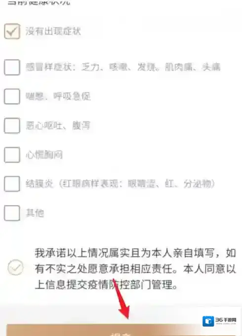 7、进入后,根据页面中的要求,如实填写自己的健康信息,点击提交即可。