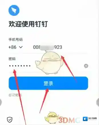 4、在钉钉的登录界面输入记录的学生号和密码点击登录。
