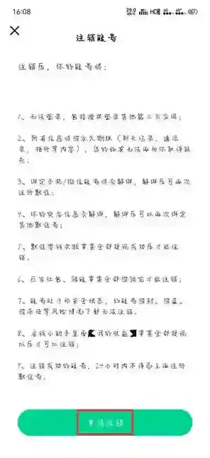 7、账号处于非安全状态,如账号被封、被盗、被冻结等风险情况下都无法注销;