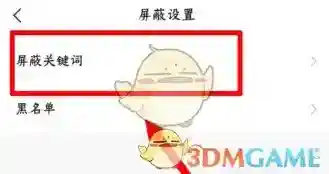 3、紧接着在设置界面中点击“屏蔽设置”。