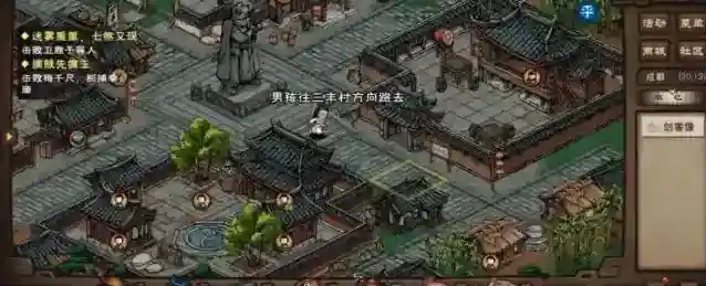 4、然后来到大侠雕像前,有一个小男孩也就是狗娃,跟他对话。