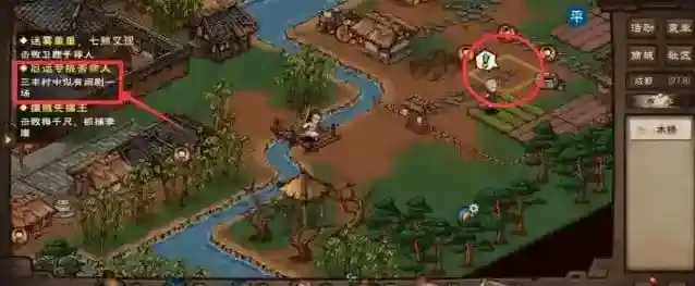 6、然后跟着男孩跑的方向也就是三丰村那,走到木桥上,会触发剧情。