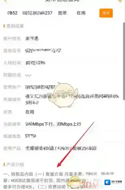 7、则将在页面下方弹出宽带的详细信息和套餐信息,从而与自己的月账单相核实。