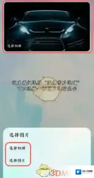 7、选择选择图片,然后找到需要展示的图片点击右上角的√,如果想要展示指定相册文件内的所有图片,可选择选择相册;