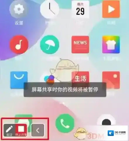 6、共享屏幕成功,在手机屏幕左下角会有个共享的设置按钮,此时参加会议的人员就可以看到你手机屏幕显示的内容。
