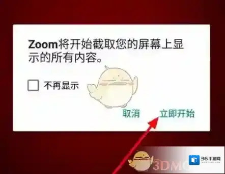 5、之后“Zoom将开始截取您的屏幕上显示的所有内容”,点击“立即开始”,可以勾选“不再提示”,以后就不会在出现这个提示;