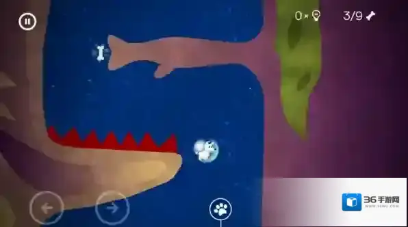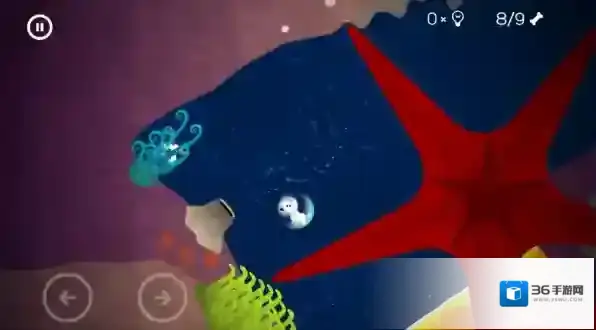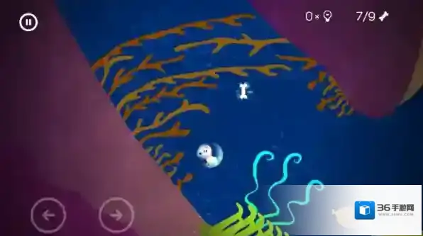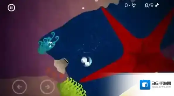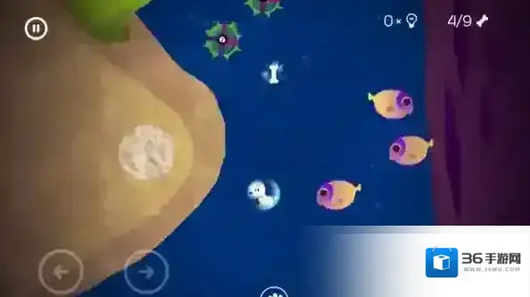 到这里发现鱼在追你,老规矩到贝壳后面,让贝壳吃掉鱼