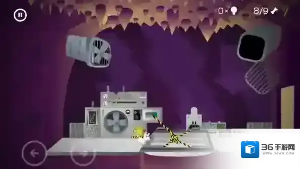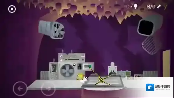 摆放好后,点击右上角的风扇,里面的扇叶会掉出来,连接绳子到图中位置