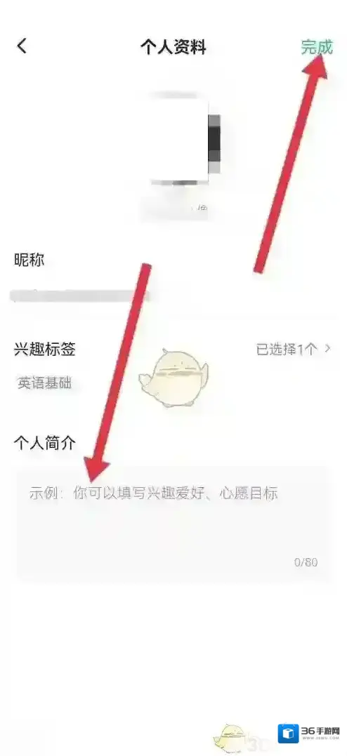 4、最后来到个人资料,然后在个人简介下方输入内容,点击完成即可。