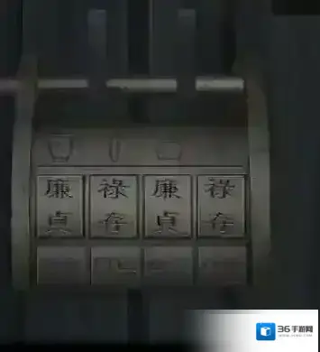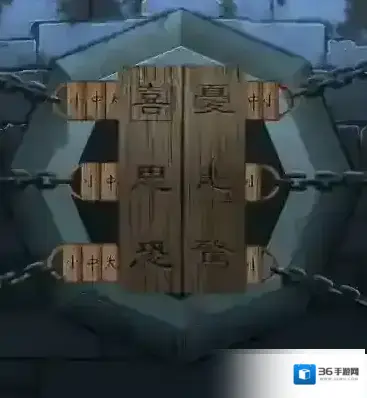 9、拼好图片之后放置到桌子上的架子上找到不同物品的对应字,解开石锁。