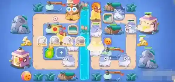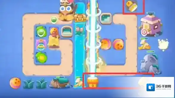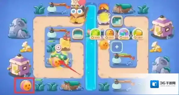 6、然后我们第六第七波有钱升级炮塔,中间河道的宝箱打掉,出现冰锥塔。