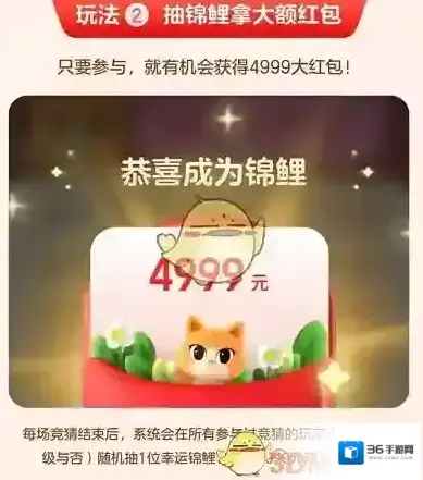 锦鲤红包是概率性获取的,只要参与即可有机会获取到4999的大额红包。