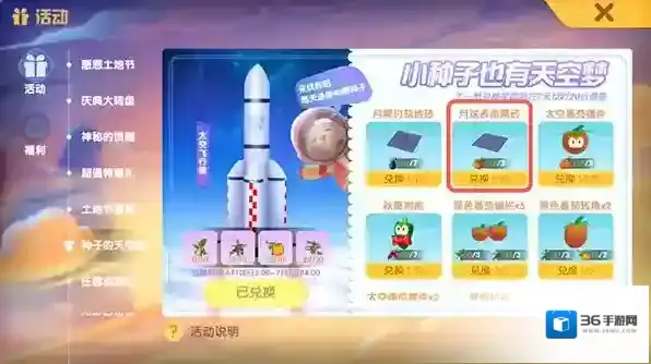 然后在右侧选择需要兑换的月球表面黑砖,点击兑换消耗太空番茄兑换可获得。