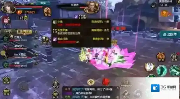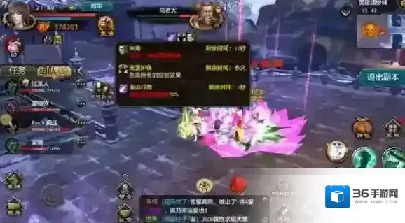 最后一个需要注意的技能,就是BOSS会随机失明一个玩家,危险性不是很大,中了技能的玩家,会不受控制的乱跑几秒的时间,如果运气不好,这个时候BOSS释放,寒冰陷阱还是挺危险的。躲避好BOSS以上的技能,就可以挑战成功了。峨眉职业还是很重要的,要及时的为残血的队友补充血量。