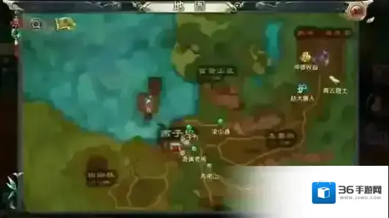 地图中飞龙堡的东北方有一条西北―东南走向的湖水。因为无法自动寻路,所以记住地图中我的位置,手动自己找到这片湖水。