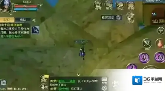 因为有瀑布的存在,所以我们需要逆流而上。使用轻功跳到瀑布上面的台子(161.134)上,便会完成。