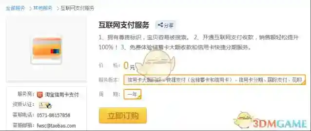 4、如果满足条件,单击进入后会跳转到卖家服务中的“互联网支付服务”,我们根据相关提示订购该服务,