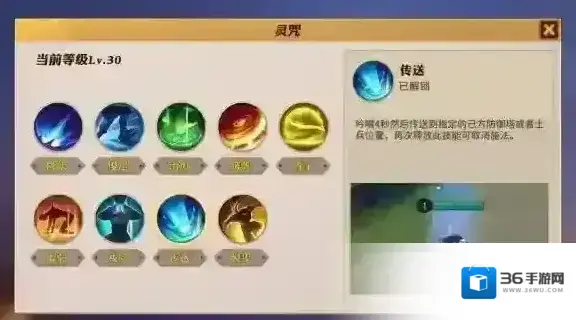 吟唱4秒然后传送到指定的己方防御塔或者士兵位置,再次释放此技能可取消施法。