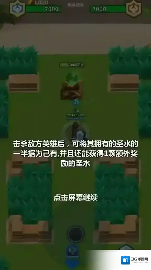 游戏中左中右各会刷新出一个圣水,角色站立在圣水中沐浴可提升属性,圣水最高可叠加10层,死亡后会掉落所有的圣水: