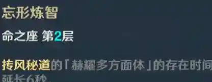 2命:大招cd是20秒,持续12s,开启这个命座延长6秒即18秒的持续时间,也就是可以触发9次「烈风波」,对于珐露珊来说在充能无问题下的双风队伍是永续大招的。