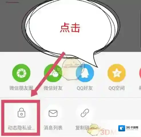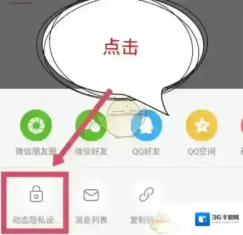 4、底部会弹出一个窗口,能看到动态隐私设置选项,点击隐私设置。如图所示