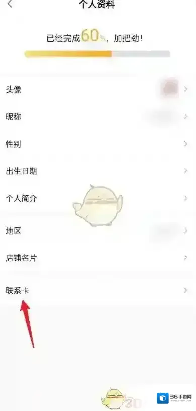 3、最后选择个人资料,确认进入联系卡。