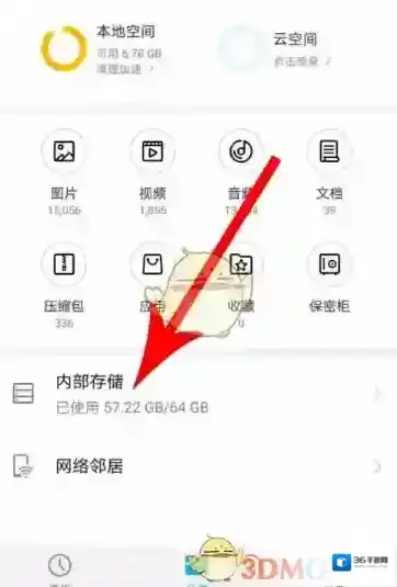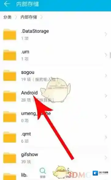 3、接着点击手机的内部存储,找到android文件夹并点击打开