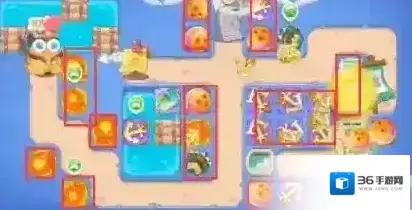 5、中间全部放置船锚,有金币升满级打怪,打墓碑同时把萝卜附近障碍物清理一下,放置火炮。