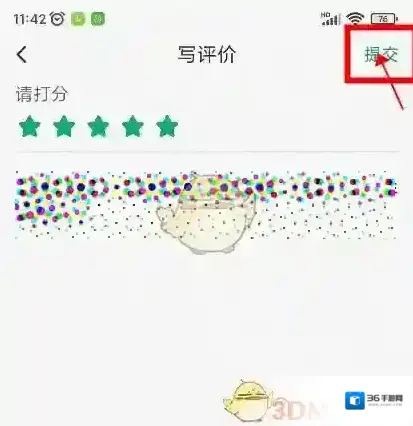 5、在写评价界面,为应用打分,书写评论,然后点击提交。