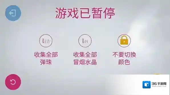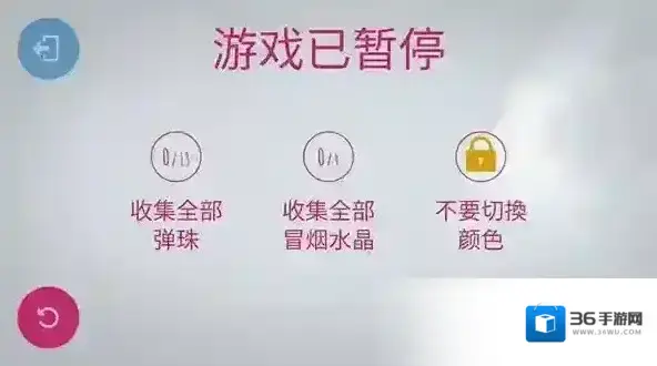 5、游戏过程中,收集全部冒烟水晶和弹珠,可以按暂停或左上角退出当前游戏。