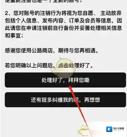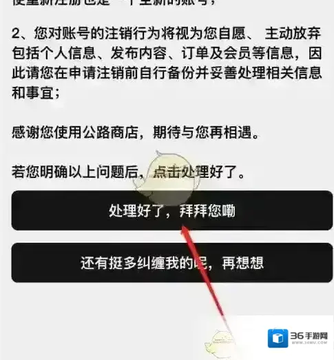 5、进入注销界面后,点击处理好了,拜拜就可以注销公路商店了。