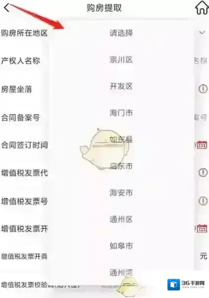 4、“购房所在地区”需选择所购买房屋归属区域,如:崇川区、开发区、如东县等。