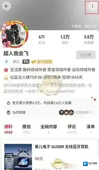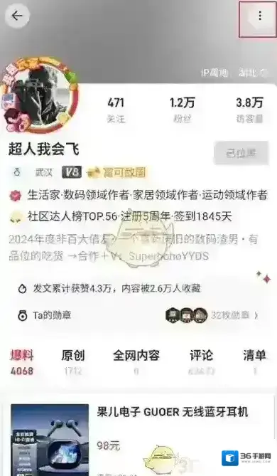 6、之后进入拉黑博主的主页,点击右上角的三个点选项;