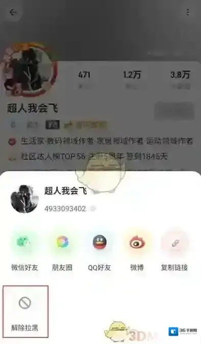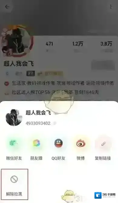 7、在下方弹出的功能中,找到解除拉黑选项即可取消拉黑。