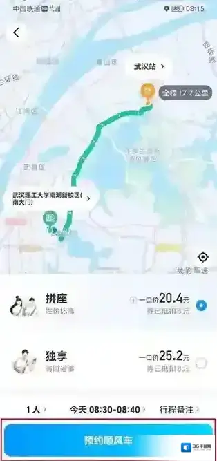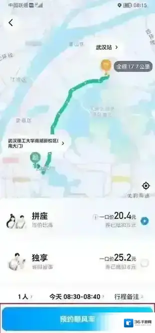 4、最后选择平坐/独坐后,点击”预约顺风车”就可以了。