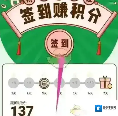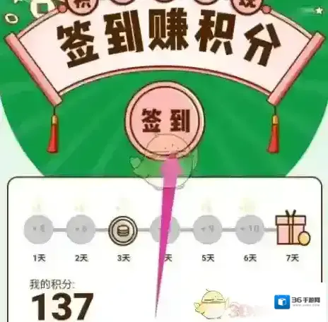 4、在打开的签到页面,点击屏幕中间的签到选项。