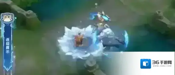 2、一技能特效:释放后呈现蓝色的圆环,外圈还有橙色作为点缀,变身后会有冰雪特效。