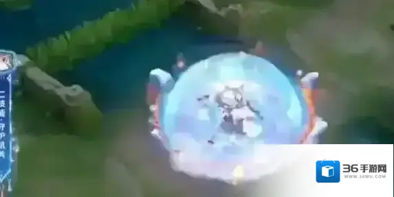 3、二技能特效:圆环上形成一个蓝色保护罩,变身后保护罩上多了兔狲耳朵。