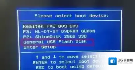 4、保存设置后自动重启进入LOGO画面时,一直按重启按F12/F7/ESC快捷键,在启动菜单中选择USB启动,如下图: