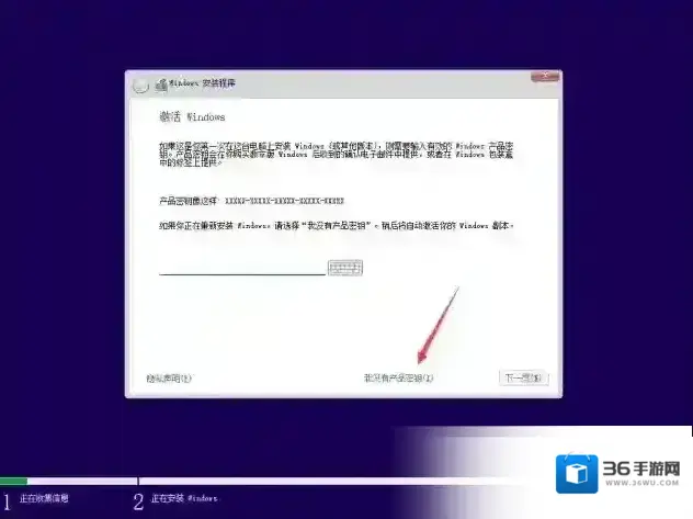 3、接下去点,我没有产品序列号直接安装,也可以使用Win10的安装序列号(通用)