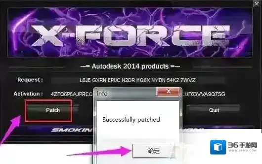 这时就会得到激活码,然后点击“Patch”,点击“确定”