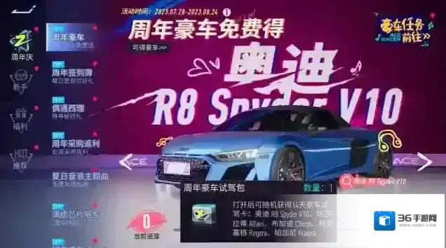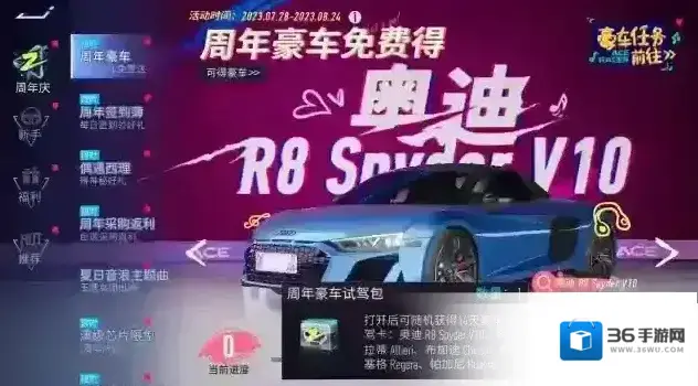 “周年豪车五选一”活动已于今日正式开启,车手们都上线打卡领积分了吗,最快仅需两周,豪车自选包就可以直接带走哦~