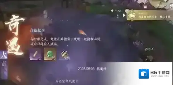 1、首先我们前往到标记好的位置,去完成奇遇白猿献图。