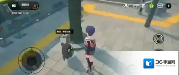2、传送至光映广场-步行区域,向后转看到黑自龙涂鸦墙壁,给涂鸦拍照,返回NPC(山姆)交付任务即可。